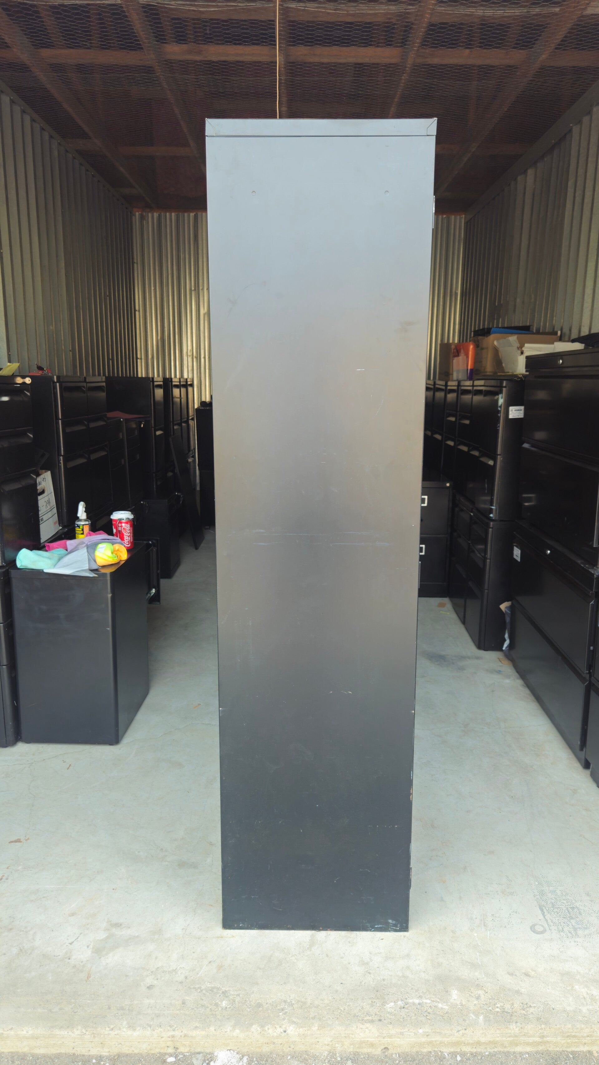 This ProSource tall black metal cabinet offers robust and secure storage, perfect for organizing your space. Fully functional and ready to serve its purpose.