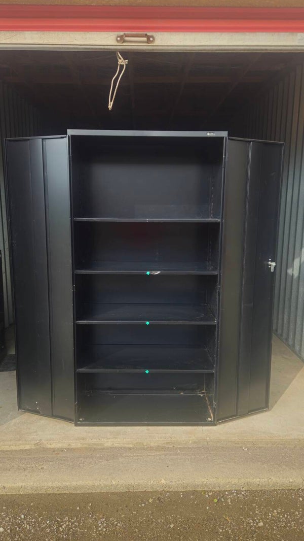 This Global metal cabinet is perfect for storing anything you need safely and securely with a lock and key included! This cabinet is in excellent condition and doesn't show signs of wear.